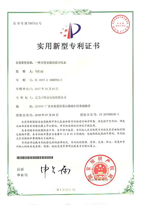 實(shí)用新型專利證書