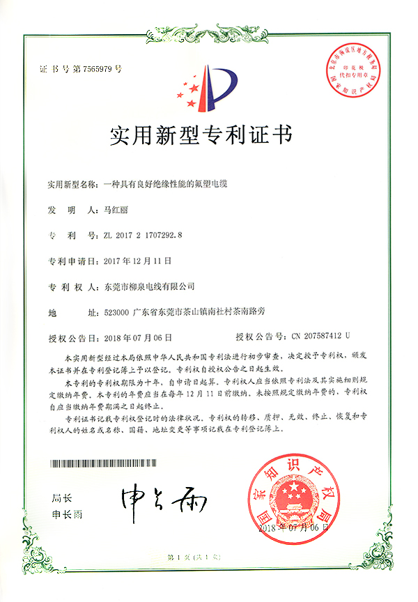 實(shí)用新型專利證書